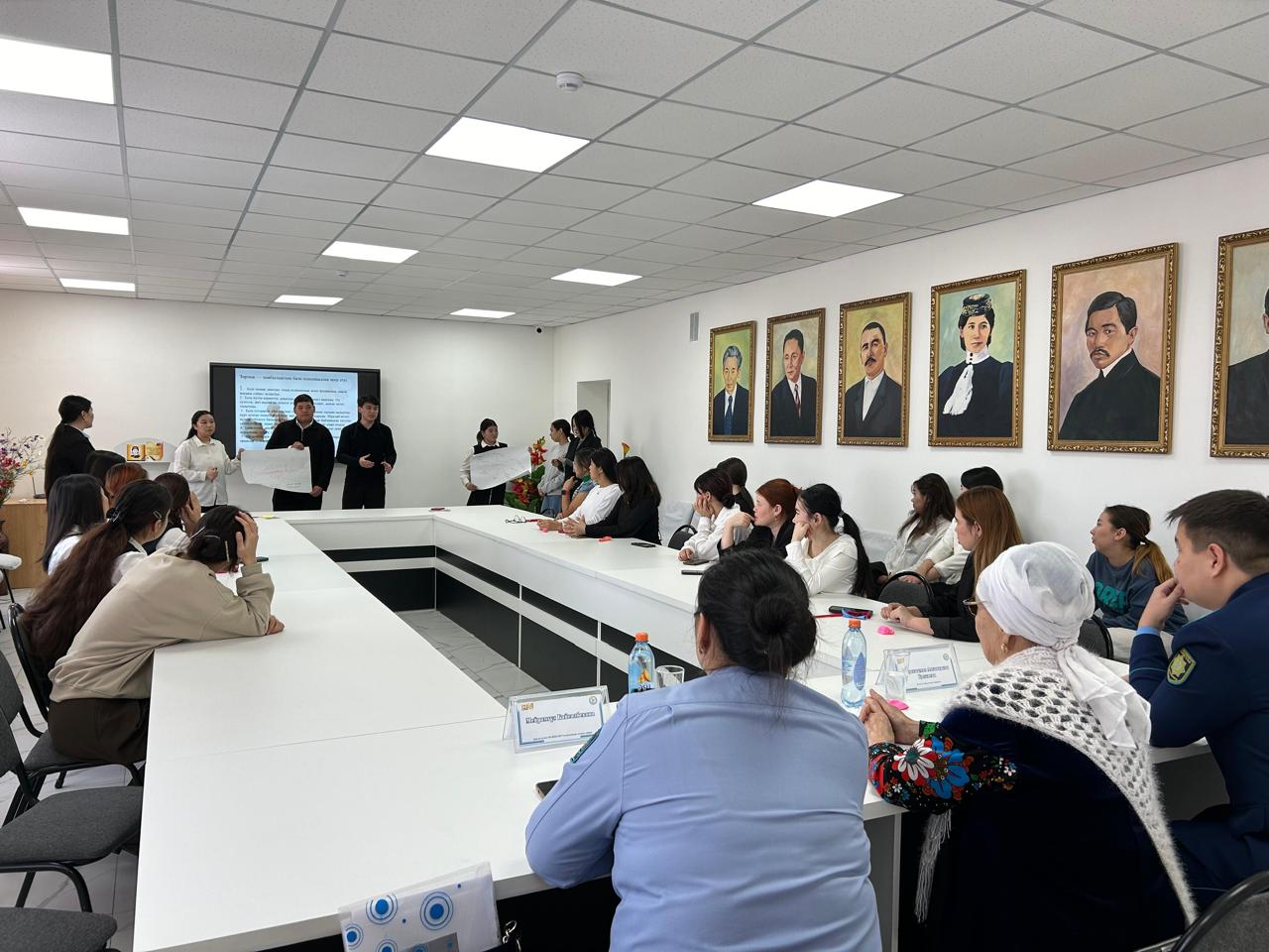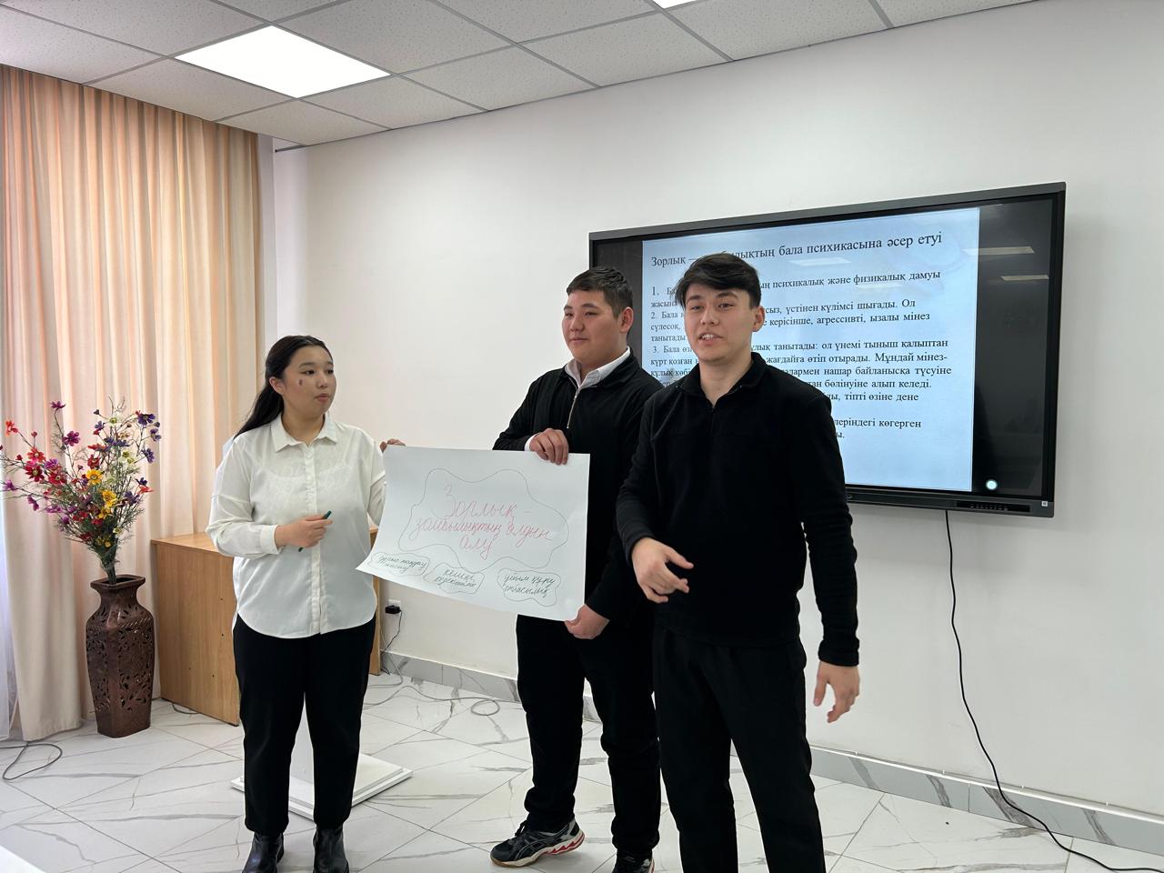 "Зорлық-зомбылықсыз 16 күн" халықаралық акциясы жүзеге асыру жоспарына сәйкес колледжде халықты тұрмыстық зорлық зомбылықтан хабардар етіп ақпараттандыру мақсатында "Зорлық зомбылықсыз - әлем" атты дөңгелек стөл өткізілді. Дөңгелек стөлге жоғарғы курс студенттері мен жас отбасылар шақырылды. Шараның басты спикерлері Арқалық қаласы ПБ ЖПҚб ЮПТ аға инспекторы полиция майоры Мейрамгүл Байсалбекова, Арқалық қаласы прокуратурасының прокуроры - Ачканов Арман Байтұрсынұлы , Қалалық "Аналар кеңесі" төрайымы Бақытжамал Аяғанқызы Қалтаева қатысты. Шара барысында тұрмыстық зорлық зомбылықтың түрлері, осындай мәселе болғанда жасалатын әрекеттер мен жедел байланыс қоңыраулары туралы ақпараттық материалдар берілді. Шараны ұйымдастырушы колледж психологі Дакар Айнұр Бақытқызы түрлі психологиялық тренингтік жаттығулар жасатып, студенттермен тұрмыстық зорлық зомбылықтың алдын алуға арналған тапсырмалар орындалып, жағдаяттар шешілді , дөңгелек стөл соңында сергіту жаттығулары өткізіліп, іс шара туралы қатысушылар мен қонақтардың пікірлері тыңдалды.