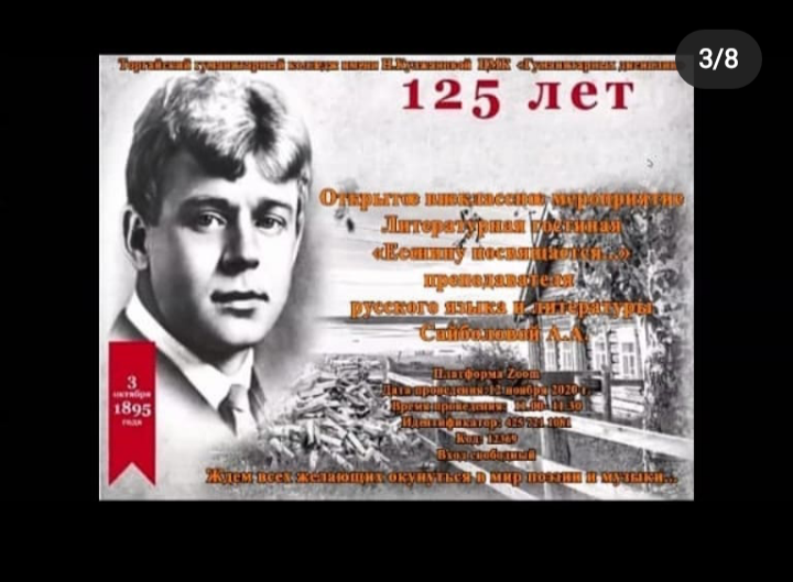 2020 жылдың 12 қарашасында Н.Құлжанова атындағы Торғай гуманитарлық колледжінде орыс тілі мен әдебиеті пәнінің оқытушысы Сайболова Аида Алимгерейқызы студенттер мен оқытушыларды «Есенинге арналған» әдеби қонақ бөлмесіне шақырды.
