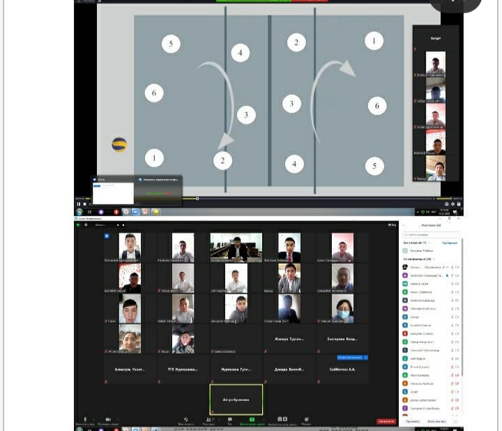 13.11.2020 жылы Дене тәрбиесі пәнінің оқытушысы Нугманов С.М. «Допты беру: төмендете түзу беру, жоғарыдан жоспарлы беру, бүйірімен төмендете беру» тақырыбында ДМ-11 тобы білім алушыларымен ZOOM платформасында ашық сабақ өтті. Ашық сабақ І-топ 14 білім алушы және өз ара білім алмасу мақсатында 13 колледж оқытушылары қатысты. Білім алушыларға сын тұрғысынан ойлау қабілетін дамыту үшін сабақ тақырыбын фото суреттер арқылы берілді.