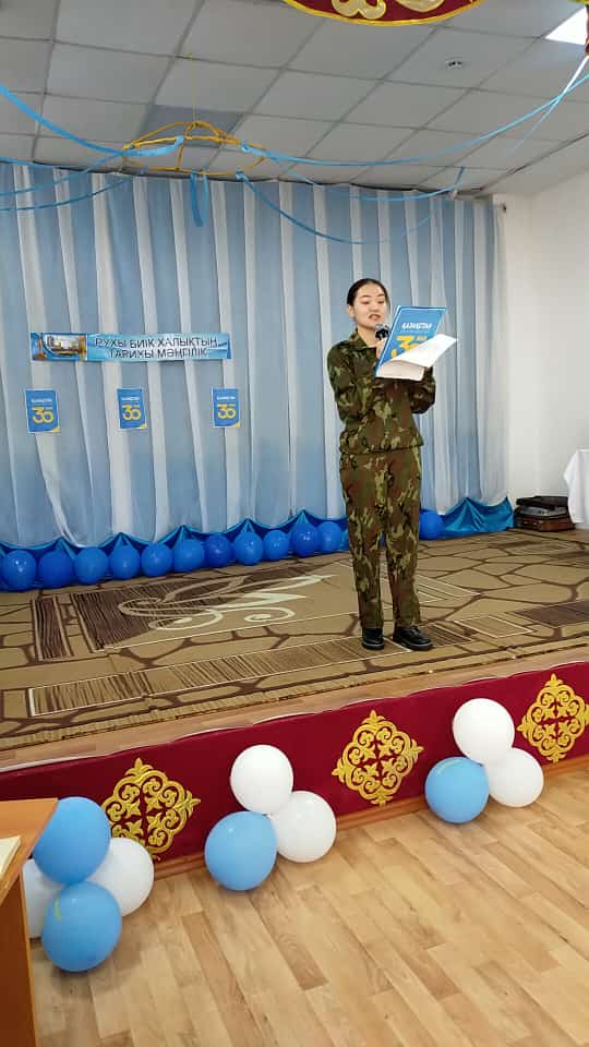 Ежелден аңсаған азат халқымыз тәуелсіздігінің биыл 30 жылдығы. Ән: «Жаса,Қазақстан» Сайлаубай Аружан мен Деріпсалы Ақеркенің орындауында тамашаланды. Нағашыбай Гүлсезімнің нақышына келтіріп орындаған «Тәуелсіздік тұғыры» монологы көрермендерге үлкен әсер берді. Студенттерге викториналық сұрақтар қойылды. Видео рольиктер тамашаланды.Кітап көрмелермен таныстырылды. Қоңарбай Жібектің «Тәуелсіздік » мәнерлеп оқуы өте жоғары деңгейде орындалды. Тәуелсіздік осы отыз жылмен шектелмейді. Оған жетудің тарихы, қазағымыздың көрген қасіреті бір жағында тұрса, екінші жағында елдігімізді, егемендігімізді сақтап, оны келешек ұрпақ үшін нығайту ісінің тұрғаны сөзсіз. Олай болса кешіміздің соңында Есімсеітов Абайдың орындауында «Атамекен» әнімен аяқталды