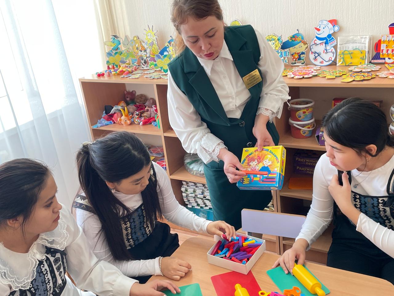 Н. Құлжанова атындағы Торғай гуманитарлық колледжінің «Мектепке дейінгі тәрбие және оқыту» мамандығының білім алушыларына арнап 2024 жылдың 2 қараша күні «Алпамыс» балабақшасында практика әдіскерлері А.Е. Насрединова мен З.Р. Хасеновалар «Тәрбиешінің бірінші жарты күндік жұмысы» тақырыбында «Ашық есік» күнін ұйымдастырды.