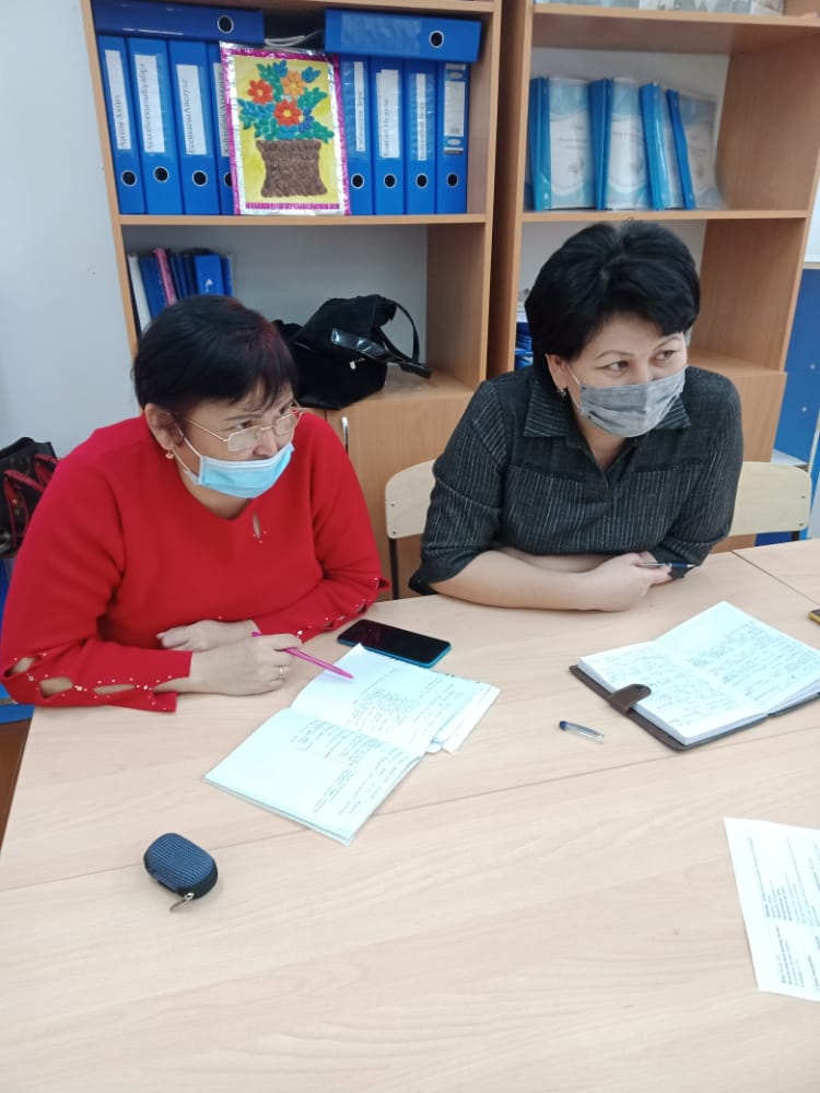 Әдіскерлер К.С. Абдилдина мен С.У. Оралбаевалар 15.02.22 ж. күні Қанафина Айзаттың қазақ тілі пәнінен «Тәуелді зат есімдердің септелуі» тақырыбында өткізген сабақтарына қатынасып, талдау жасап, әдістемелік көмектерін берді.