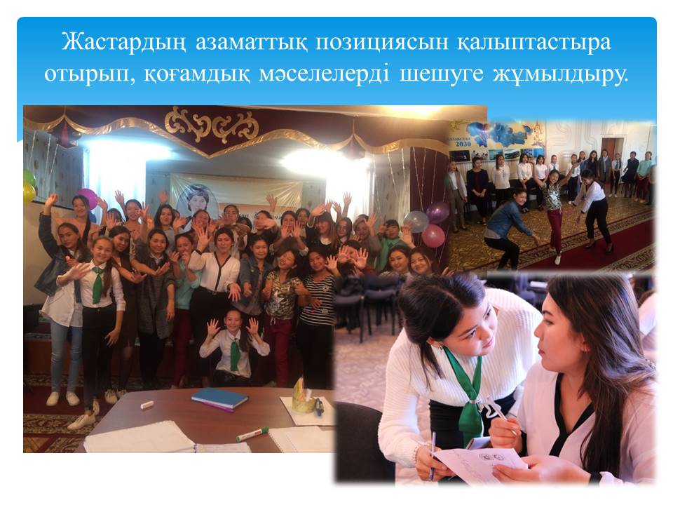3 слайд Қоғамдық бірлестік құрудағы басты мақсат: Жастардың азаматтық позициясын қалыптастыра отырып, қоғамдық мәселелерді шешуге жұмылдыру.