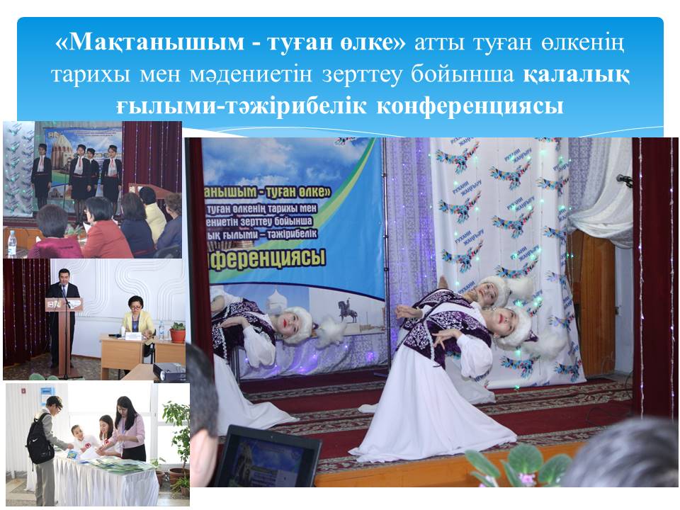 12 слайд Мемлекеттік тапсырыс бойынша жүзеге асырылған 2 жоба «Мақтанышым - туған өлке» атты туған өлкенің тарихы мен мәдениетін зерттеу бойынша қалалық ғылыми-тәжірибелік конференциясы ұйымдастырылып өткізілді.