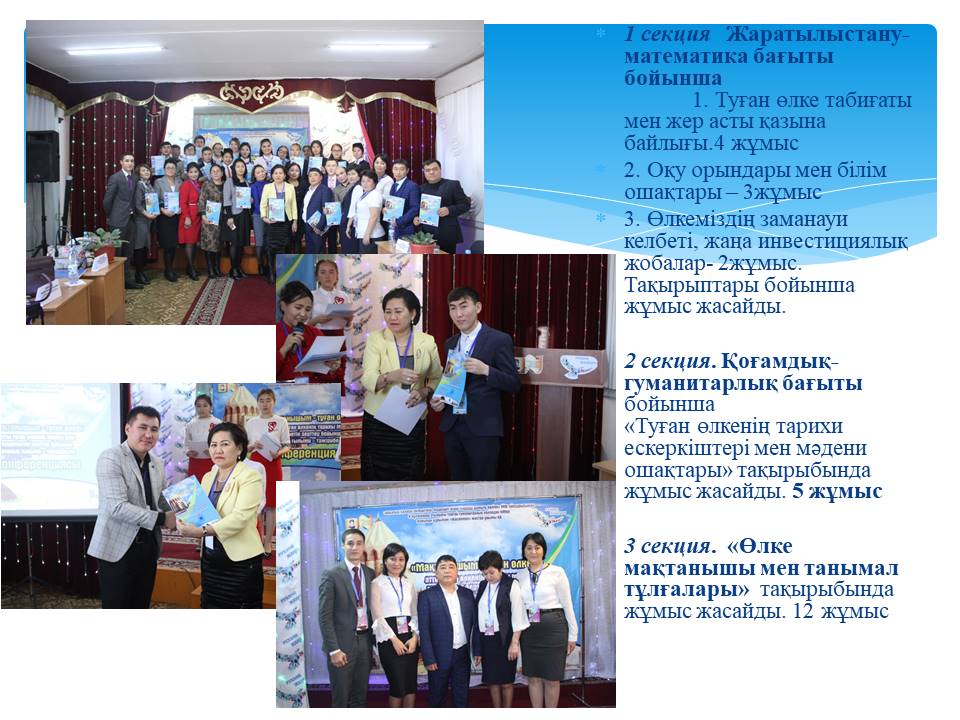 3 секция. «Өлке мақтанышы мен танымал тұлғалары» тақырыбында жұмыс жасайды. 12 жұмыс