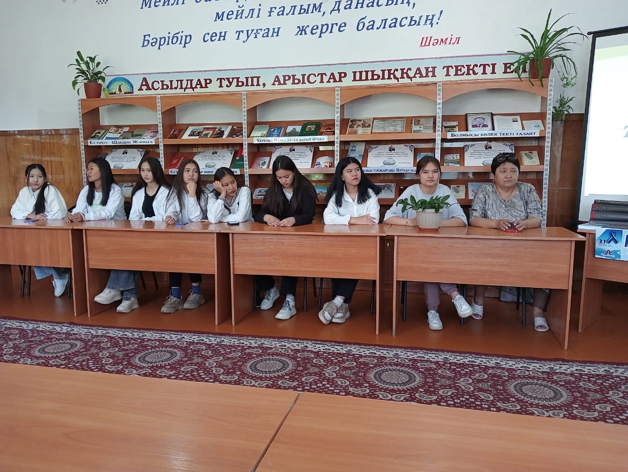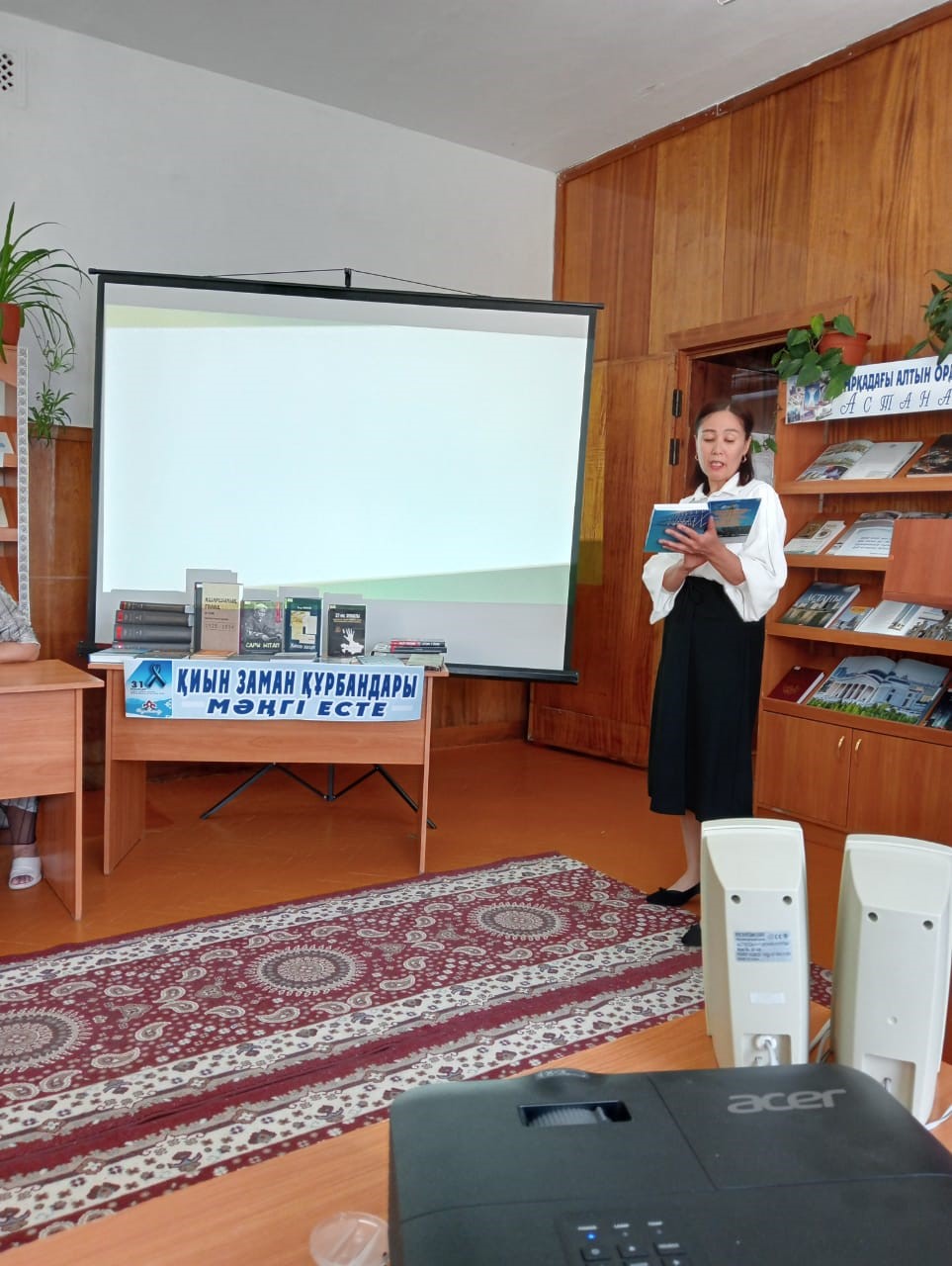 «31 мамыр-Саяси қуғын-сүргін және ашаршылық құрбандарын еске алу күніне»орай,кітапханамызда қазақ халқының тарихында қаралы нәубет боп жазылған ашаршылық қасіретін түсіну және жазықсыз жапа шеккен арыстарымыздың рухына тағзым ету мақсатында «Талайдың түбіне жеткен отыз жеті,Тарихтың қара түнек ол бір беті»атты кеш реквием болып өтті. Кеш барысында тарих беттеріндегі мәліметтерімен бөлісіп,қасіретті ғасырдың нәубетін өлең тілінде сөйлеткен ақындарымыздың жырлары оқылды."Бүгін біз ұжымдастыру жылдарында аштыққа ұшырағандарды, сондай-ақ туған жерінен кетуге мәжбүр болғандарды да еске аламыз. Сол жылдардағы орасан зор адам шығыны мен тағдыр тауқыметі әрбір азаматтың жүрегіне жара салды.Тоталитаризмнен зардап шеккен көптеген ұлт өкілдері үшін қазақ жері құтты мекенге айналды. Ата-бабаларымыздан дарыған қайсарлық пен төзімділіктің арқасында қатаң сыннан абыроймен өтіп, біртұтас ұлт ретінде бірігуге мүмкіндік алдық" - деп атап өтті Жазықсыз жазаланғандардың қатарында Ә.Бөкейхан, А.Байтұрсынұлы, М.Тынышбаев, М.Дулатұлы, Т.Рысқұлов, М.Жұмабаев, С.Сейфуллин, І.Жансүгіров, Б.Майлин, С.Асфендияров сияқты мемлекет және қоғам қайраткерлері, ұлт зиялылары болды.Кеш соңында болашақ жастарымызға игі тілектер айтылып,естелік суретке түсірілді.