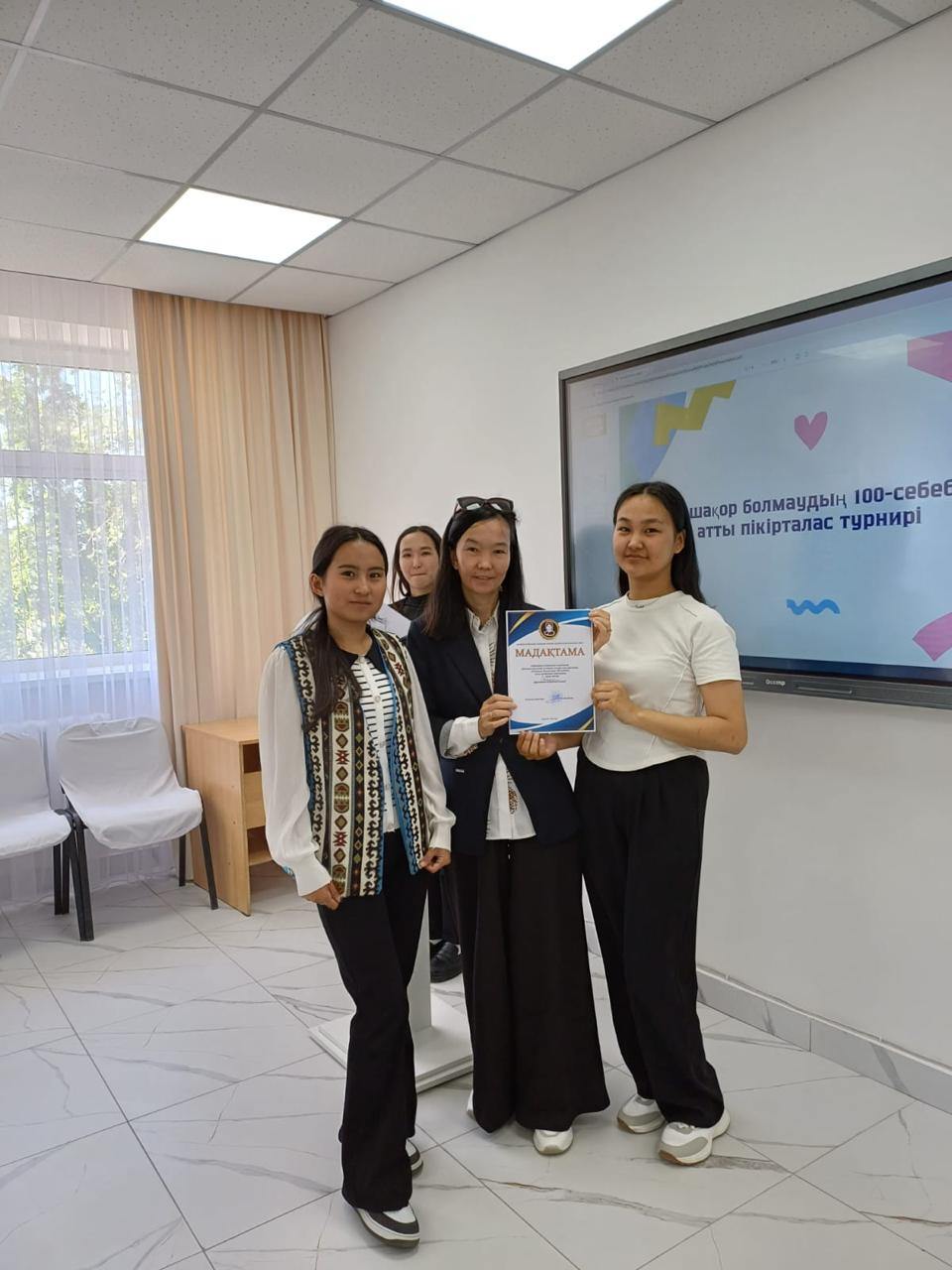 В рамках месячного плана, приуроченного к Международному дню борьбы с наркоманией, 04.06.24 г для студентов колледжа был проведен дебатный турнир «100 причин не быть наркоманом», организованный дебатным кружком «Өркениет». Дебаты прошла в Британском формате. В мероприятии приняли участие 4 фракции из групп БМ-12 «Фракция фракции», БМ-22 «Втораштар», МД-11 «Бірлік тобы», ДМ-12 «Намыс». Возглавила турнир председатель дебатного клуба « Өркениет», призер городских и областных дебатных турниров Оспан Аружан. Дискуссионная резолюция: : Интернет виноват в быстром развитии наркологии среди молодежи. По итогам дискуссии лучшей была признана группа БМ-11. Группа ДМ-12 получила 2 ранг, Группа 3 ранга БМ-22, группа 4 ранга МД-11. Статус «Лучшего спикера» дебатов был присвоен Асанбай Гульназым. Участники отличались открытым, свободным высказыванием своих мыслей. Дебаты показали высокий уровень игры через публичную дискуссию, культуру рассуждений. .