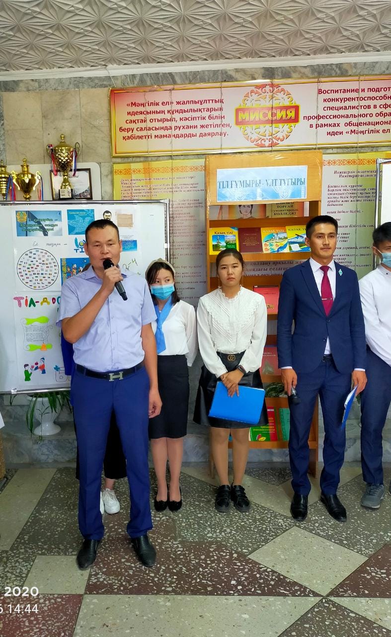 6 сентября состоялось торжественное открытие декады языков, организованное объединением гуманитарных дисциплин ко Дню языков Казахстана. На первом этаже колледжа было проведено собрание, организована выставка.