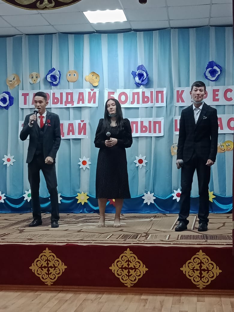 Цель мероприятия: воспитание у студентов 1 курса добросовестности, трудолюбия, бережного отношения к поступлению в ряды студентов, сохранения статуса колледжа, сохранения всех полученных знаний и усилий. Вечер открылся танцами вальсом мальчиков и девочек 1 курса, а также выступлениями студентов. В мероприятии приняли участие студенты АрПИ, мед колледжа, экономического колледжа, многопрофильного колледжа и нашего педагогического колледжа. Особо отличились кюй, исполненный студенткой 1 курса музыкального отделения Орынбасар Нурбиби, песня «Студенты» в исполнении студентов АрПИ, мед колледжа. Наша главная цель-формирование мотивационного пространства, обеспечивающего развитие интеллектуальных возможностей, лидерских качеств и талантов каждой личности, воспитание всесторонне и гармонично развитой личности на основе общечеловеческих и национальных ценностей, способствуя формированию ее информационной культуры. Вечер прошел на своем уровне и завершился дискотекой.